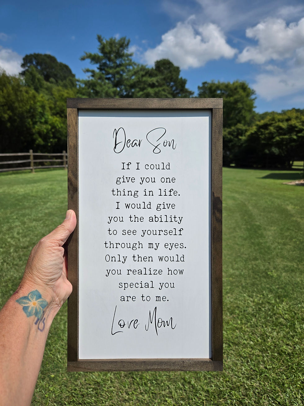 A heartfelt piece that captures the unbreakable bond between a parent and their son. This handcrafted sign makes a touching reminder of love, encouragement, and pride, perfect for displaying in a bedroom, living room, or family space. A keepsake he’ll treasure for years, reminding him of the love that always surrounds him.